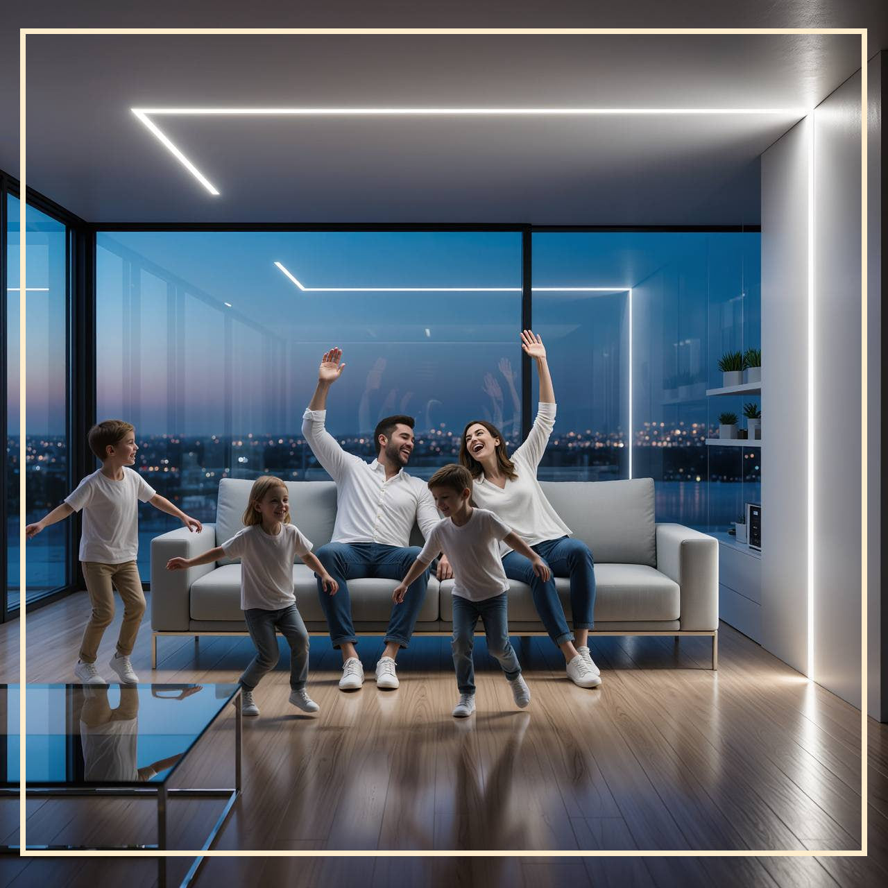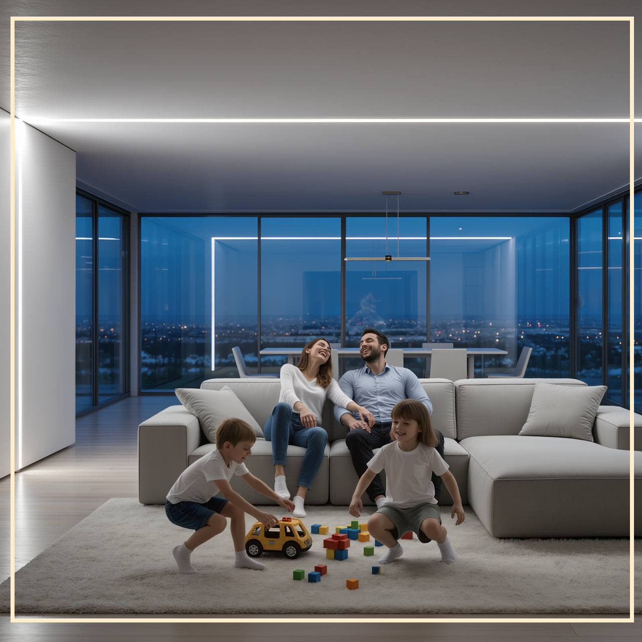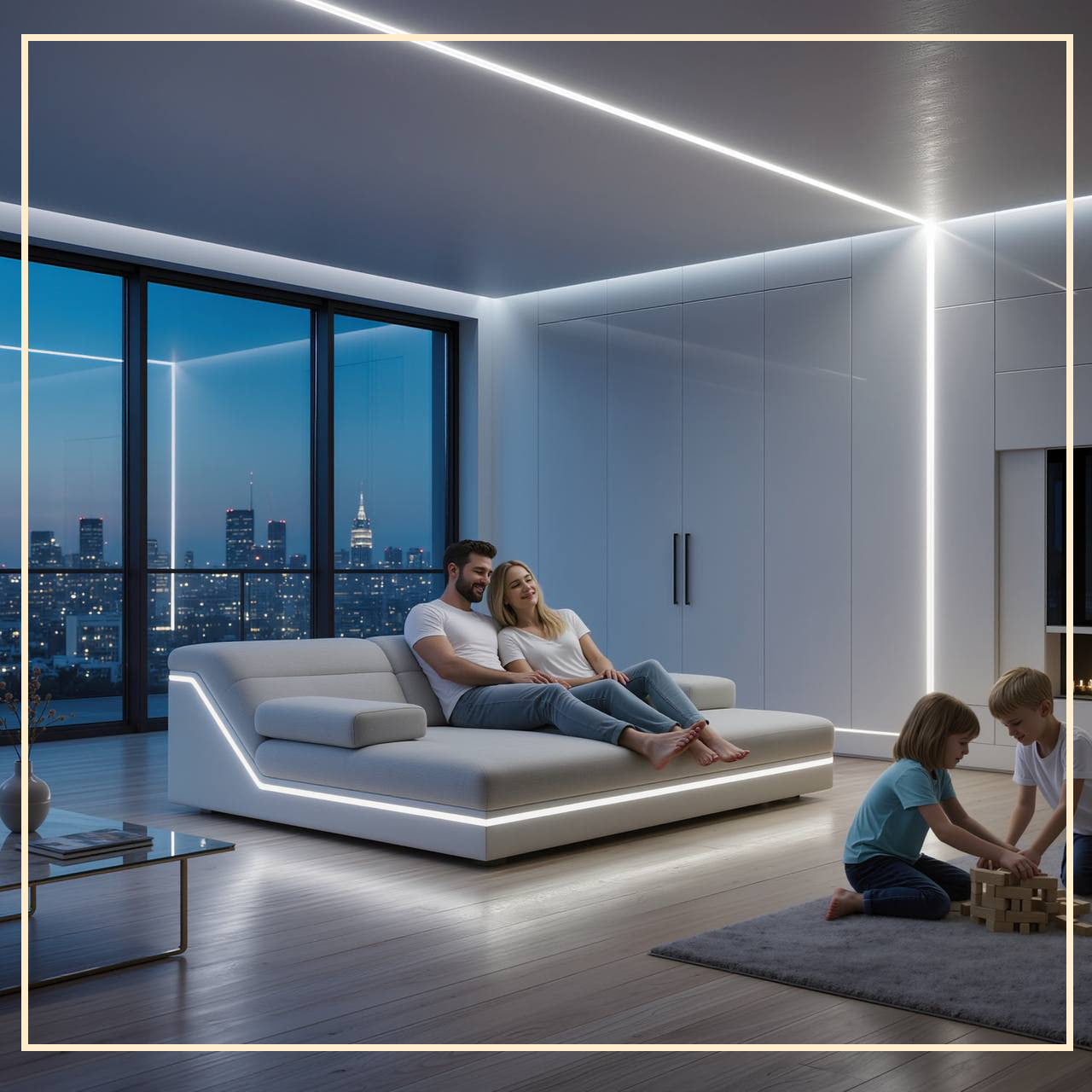 Ideal for modern interiors, architectural lines, floating ceilings, illuminated baseboards, furniture accents, and dynamic design elements.