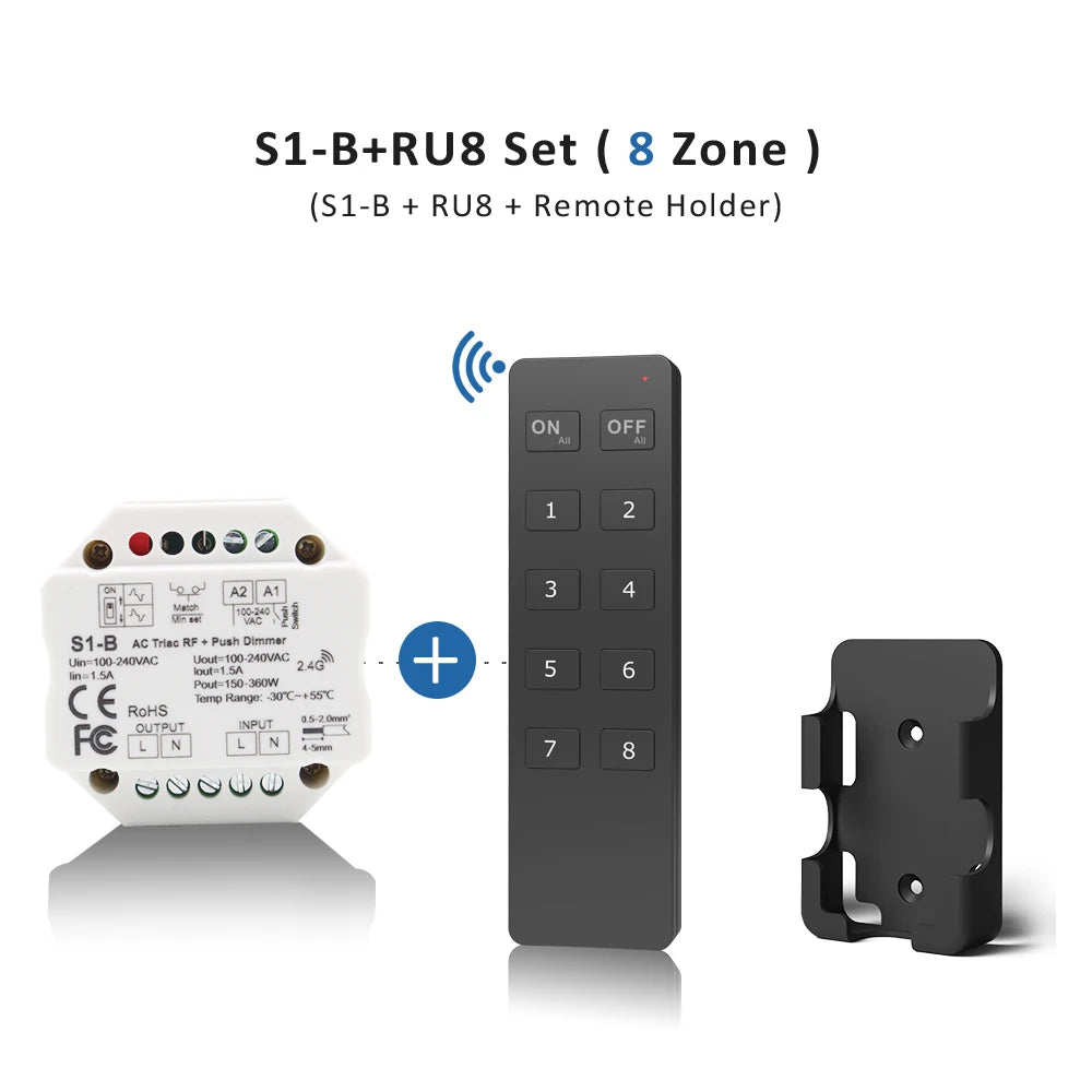 1,4,8 zone dimming/10-key/Wireless remote 30m distance/CR2032 battery/Magnet stuck fix